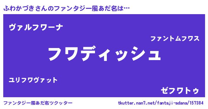 | ヒーロー風カッコイイあだ名 | 『ネオフワカヅキ』『仮面フワダー』 |