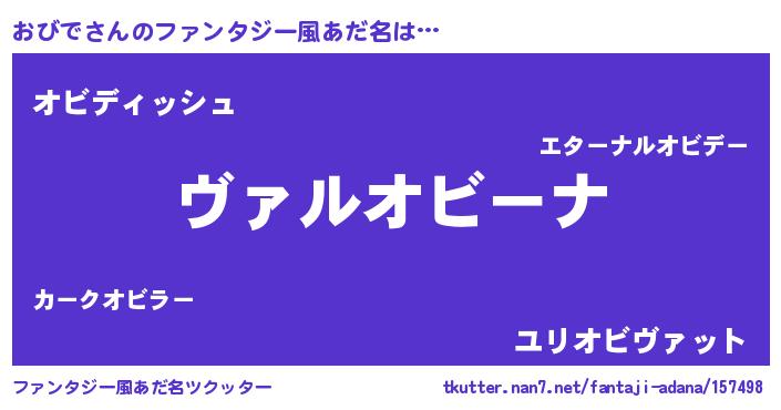 | 男性向けラノベタイトル風あだ名 | 『この素晴らしい世界におびでを!』 |