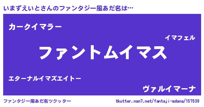 | 男性向けラノベタイトル風あだ名 | 『いまずえいとの嫁は女の子じゃないと思った?』 |