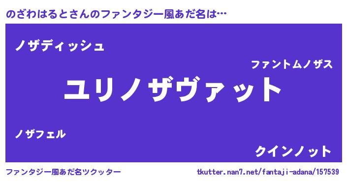 | 男性向けラノベタイトル風あだ名 | 『ノザワハルトスレイヤー』 |