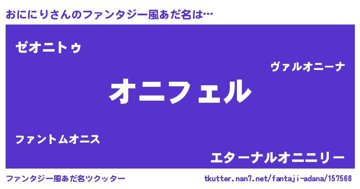 | 男性向けラノベタイトル風あだ名 | 『オニニリアートオンライン』 |