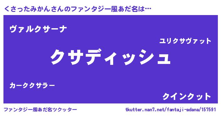 | ヒーロー風カッコイイあだ名 | 『ネオクサッタミカン』『仮面クサダー』 |