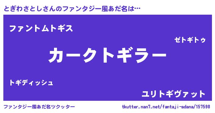 | ヒーロー風カッコイイあだ名 | 『魔戒騎士トギ』『究極戦士トギワサトシ』 |