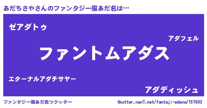 | ヒーロー風カッコイイあだ名 | 『魔戒騎士アダ』『究極戦士アダチサヤ』 |