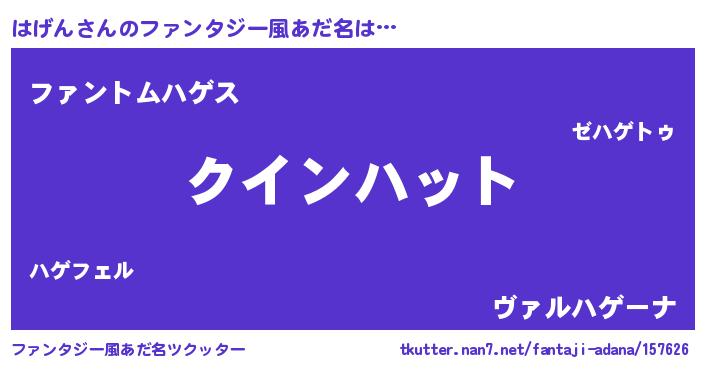 | 男性向けラノベタイトル風あだ名 | 『ノーゲーム・ノーハゲン』 |