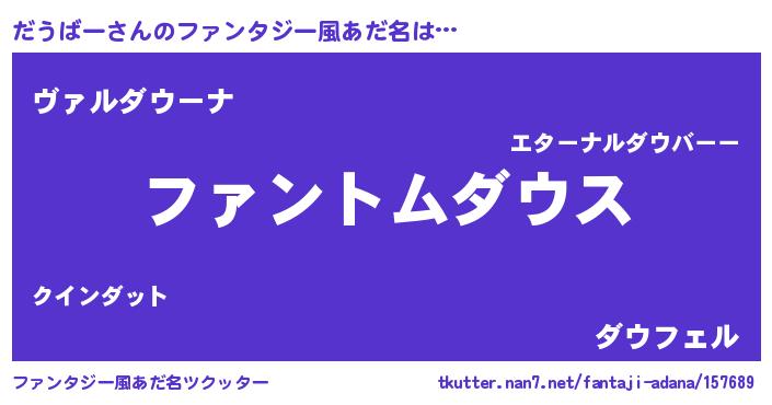 | 男性向けラノベタイトル風あだ名 | 『だうばーの嫁は女の子じゃないと思った?』 |