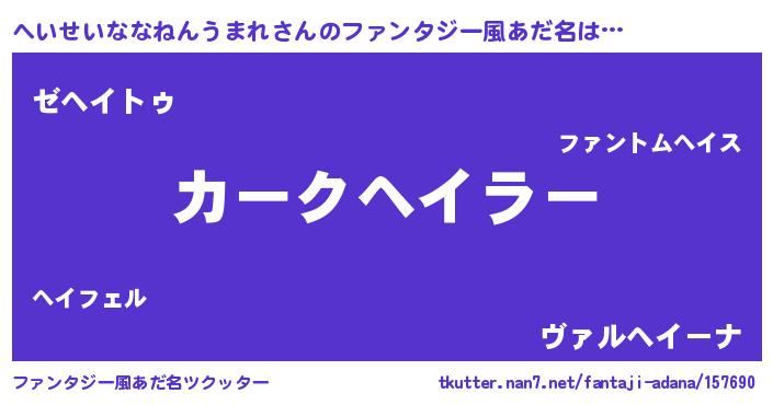 | 意味不明あだ名 | 『自称へいせいななねんうまれ』 |