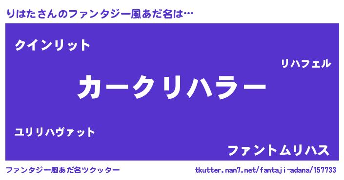 | 自動車の名前っぽいあだ名 | 『フェリーハ』『リンR』『リハティマ』 |