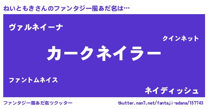 | 意味不明あだ名 | 『住所不定無職ねいともき(12歳)』 |
