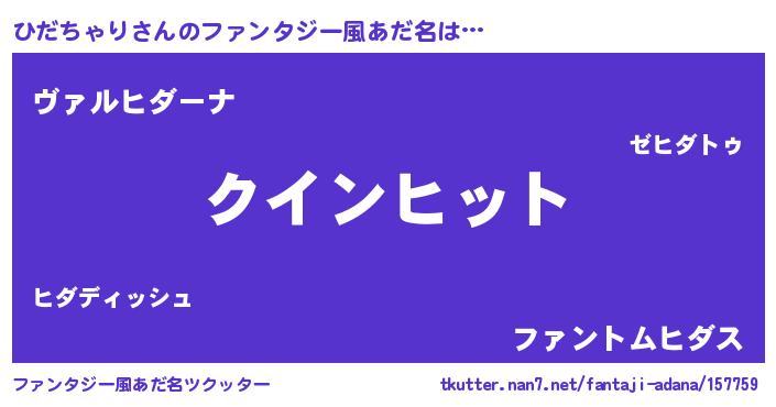 | 女子向けラノベタイトル風あだ名 | 『ひだちゃり恋絵巻』『闇のひだちゃり』 |