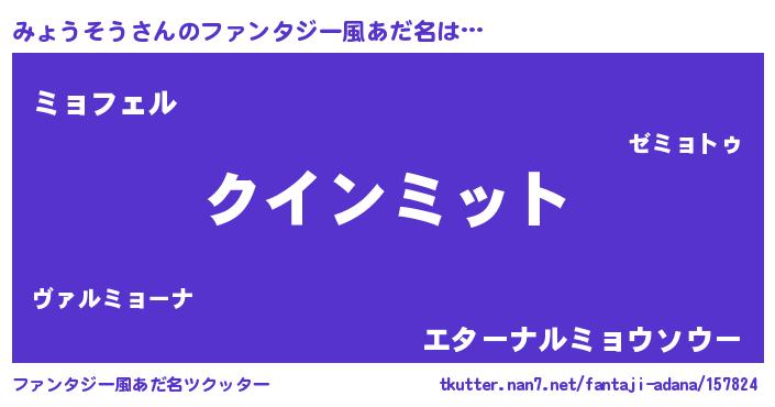| 男性向けラノベタイトル風あだ名 | 『ノーゲーム・ノーミョウソウ』 |