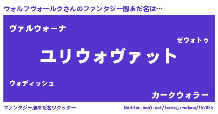 | 男性向けラノベタイトル風あだ名 | 『転生したらウォルフヴォールクだった件』 |