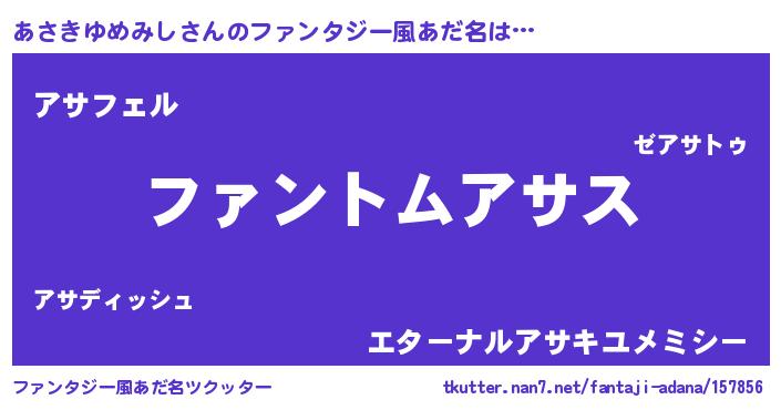 | ヒーロー風カッコイイあだ名 | 『天弓騎士アサ』『ネオアサキユメミシ』 |