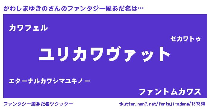 | 男性向けラノベタイトル風あだ名 | 『かわしまゆきの~年齢イコール彼女いない歴の魔法使い~』 |