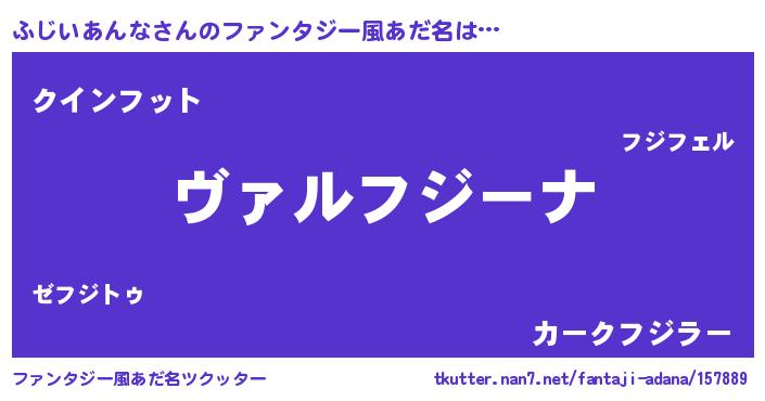 | 男性向けラノベタイトル風あだ名 | 『魔弾の王とふじいあんな』 |