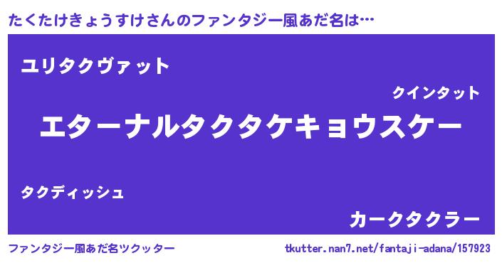| 欧米人風あだ名 | 『たくたけきょうすけクリステル』 |
