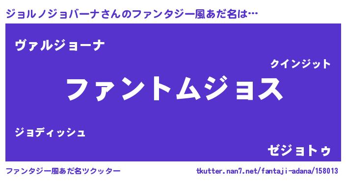 | 男性向けラノベタイトル風あだ名 | 『ジョルノジョバーナの嫁は女の子じゃないと思った?』 |