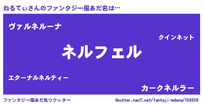 | ヒーロー風カッコイイあだ名 | 『スーパーネルティ』『仮面ネルダー』 |