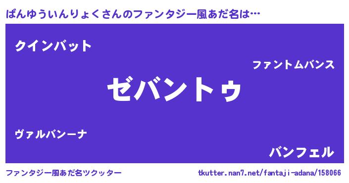 | ヒーロー風カッコイイあだ名 | 『最強戦士バンユウインリョク』 |