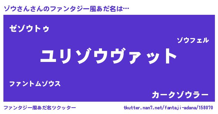 | 男性向けラノベタイトル風あだ名 | 『ゾウサンスレイヤー』 |