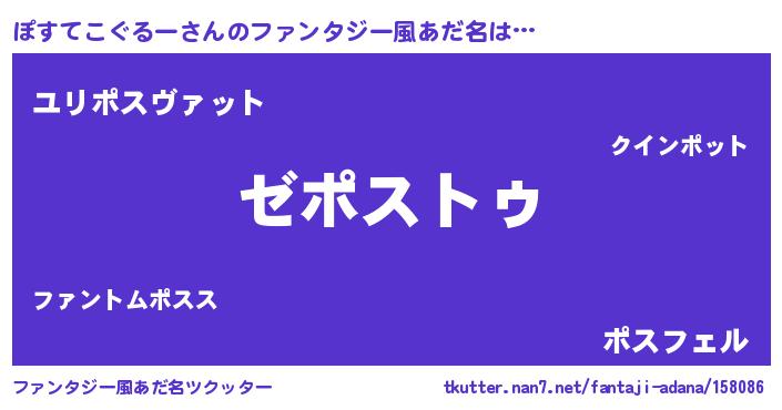 | 男性向けラノベタイトル風あだ名 | 『Re:ぽすてこぐるーから始める異世界生活』 |