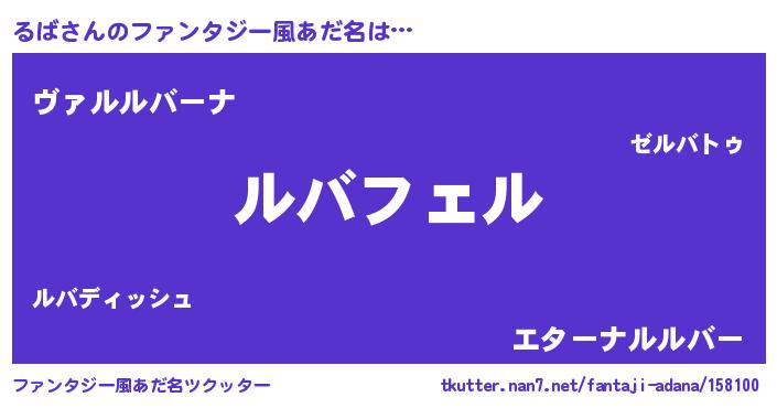 | 男性向けラノベタイトル風あだ名 | 『るばの憂鬱』 |