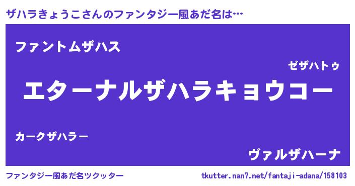 | 意味不明あだ名 | 『ザハラきょうこフォーエバー』 |