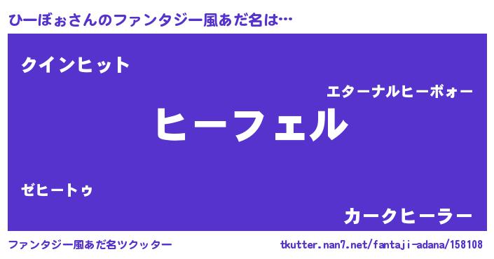 | 男性向けラノベタイトル風あだ名 | 『ひーぼぉの憂鬱』 |