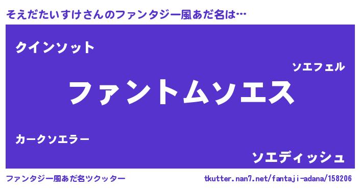 | 男性向けラノベタイトル風あだ名 | 『そえだたいすけの嫁は女の子じゃないと思った?』 |