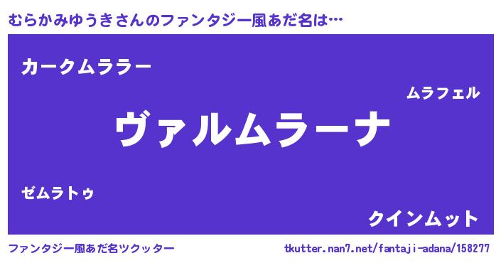 | 男性向けラノベタイトル風あだ名 | 『魔弾の王とむらかみゆうき』 |