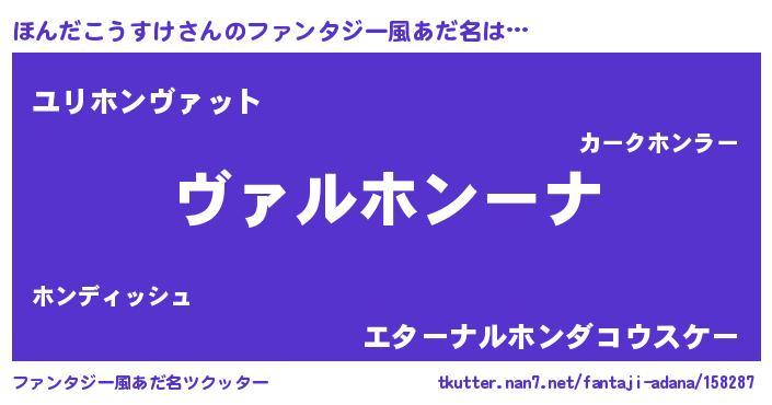 | 女子向けラノベタイトル風あだ名 | 『ほんだこうすけが死なない童話 林檎のほんだこうすけの診療簿』 |