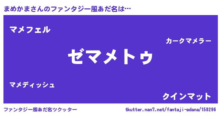 | 男性向けラノベタイトル風あだ名 | 『Re:まめかまから始める異世界生活』 |