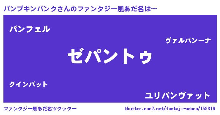 | 意味不明あだ名 | 『自称パンプキンパンク』 |