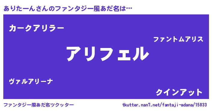 | 男性向けラノベタイトル風あだ名 | 『アリターンアートオンライン』 |