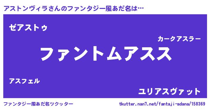 | 欧米人風あだ名 | 『ウサインアストンヴィラ』 |