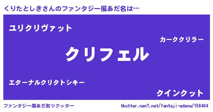 | ヒーロー風カッコイイあだ名 | 『スーパークリタトシキ』『魔戒騎士クリ』 |