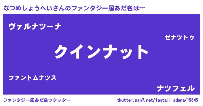 | 女子向けラノベタイトル風あだ名 | 『なつめしょうへい恋絵巻』 |