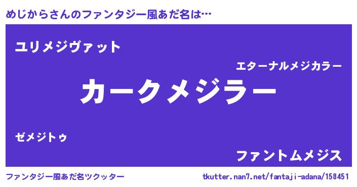 | 伝説のあだ名 | 『解き放たれた魔法使いめじから』 |