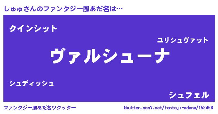 | ヒーロー風カッコイイあだ名 | 『仮面シュダー』『慈愛の使者しゅゅ』 |