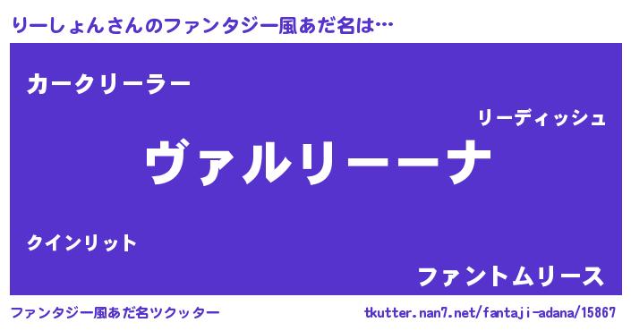 | 男性向けラノベタイトル風あだ名 | 『魔弾の王とりーしょん』 |