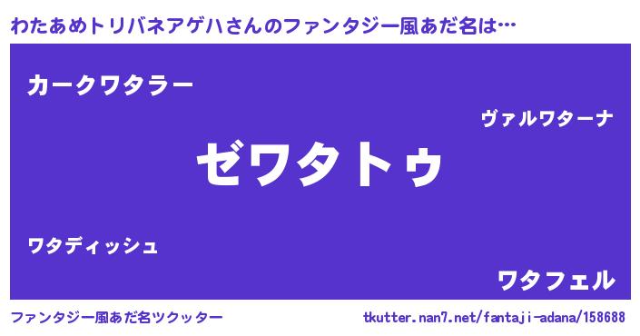 | 自動車の名前っぽいあだ名 | 『レクワス』『フェワータ』『デミワ』 |