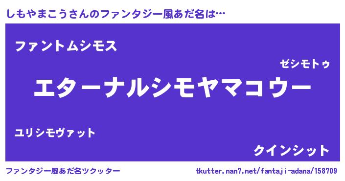 | 意味不明あだ名 | 『しもやまこうフォーエバー』 |