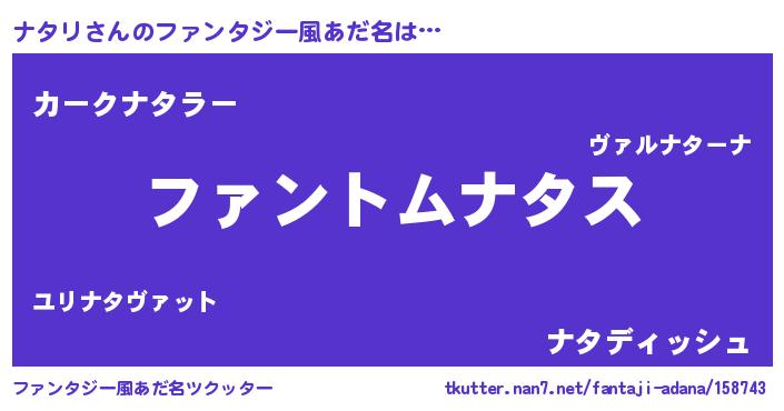 | ヘコむあだ名 | 『ナタ太郎』『ナタリ(小並感)』 |
