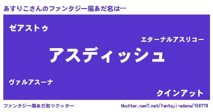 | 意味不明あだ名 | 『永久保存あすりこ』『自称あすりこ』 |