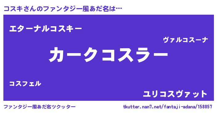 | 男性向けラノベタイトル風あだ名 | 『緋弾のコスキ』『コスキスレイヤー』 |