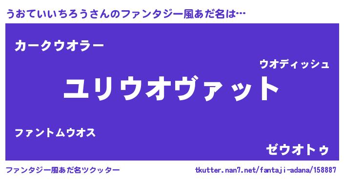 | 男性向けラノベタイトル風あだ名 | 『うおていいちろう~年齢イコール彼女いない歴の魔法使い~』 |