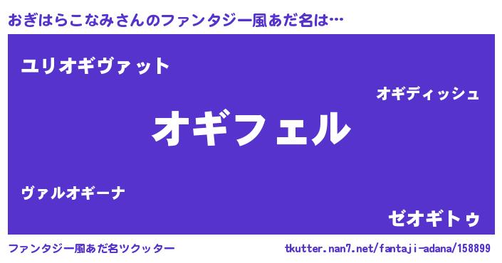 | 男性向けラノベタイトル風あだ名 | 『おぎはらこなみの憂鬱』 |