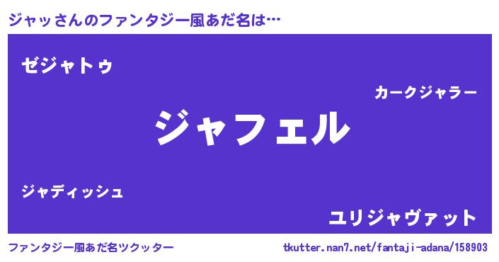 | 男性向けラノベタイトル風あだ名 | 『ジャッの憂鬱』『魔法科高校のジャッ』 |