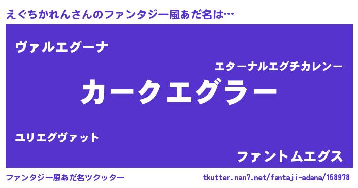 | 欧米人風あだ名 | 『えぐちかれん・ステッグマイヤー』 |