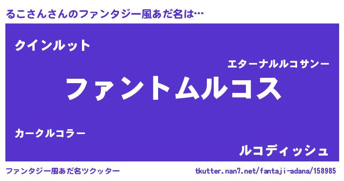 | 男性向けラノベタイトル風あだ名 | 『るこさんの嫁は女の子じゃないと思った?』 |